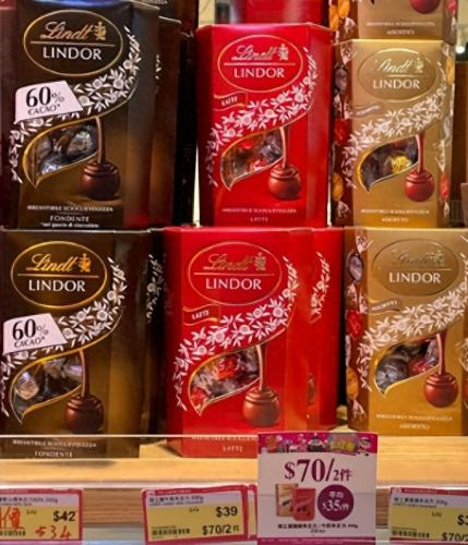 香港的大生百貨70港幣2件「瑞士蓮巧克力」,香港優品69港幣2件,而且還有多款口味可以選擇:什錦混合、牛奶夾心、白巧夾心、60%黑巧、70%黑巧、榛子等,這款巧克力還不含代可可脂,我終於在過年的時候實現瑞士蓮巧克力自由啦!除了瑞士蓮巧克力,79元港幣1盒「費列羅巧克力30粒禮盒」,兩款巧克力過年送禮是個不錯的選擇。