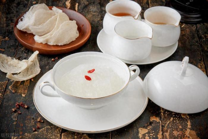 銀耳同樣是滋補養顏的佳品,與燕窩搭配相得益彰。將銀耳泡發後去除根部,撕成小朵,放入鍋中,加足量清水,大火煮開後轉小火慢燉1-1.5小時,直至銀耳出膠變得濃稠。期間按照常規步驟泡發、洗淨燕窩。待銀耳羹熬好,加入燕窩,繼續燉煮10-15分鐘。最後依據個人口味加入冰糖或蜂蜜,攪拌均勻。燕窩的爽滑搭配銀耳的軟糯,口感層次豐富,且具有極佳的滋補功效。