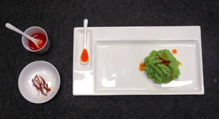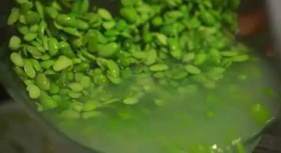 厲曉麟以剛剛生髮嫩綠的毛豆作為食材,在其最嫩綠時採摘和儲存,用人的手將豆皮搓去,留下顏色鮮豔的豆子,再搭配上精選鮮貝,才能還原他兒時品嚐到的宮廷味道。