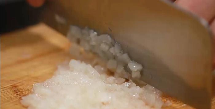 4. 去掉鮮貝旁邊老的部分,再將鮮貝改刀成細丁。