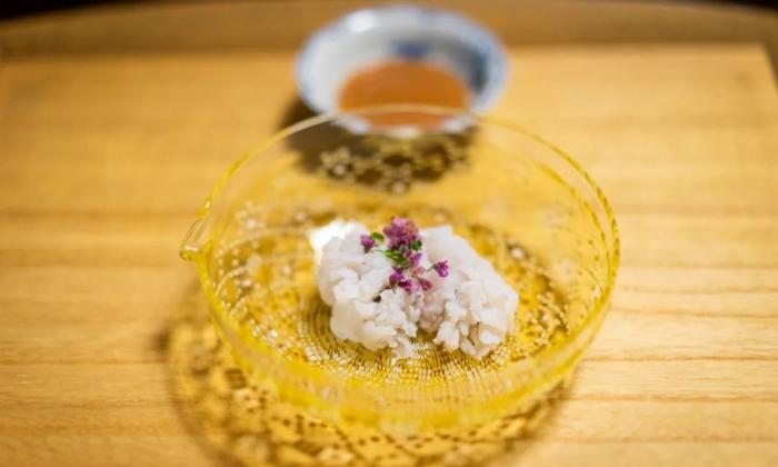 明石鯛裡還裹著一小塊出汁做成的啫喱,使鯛魚的鮮味更上一個層次。