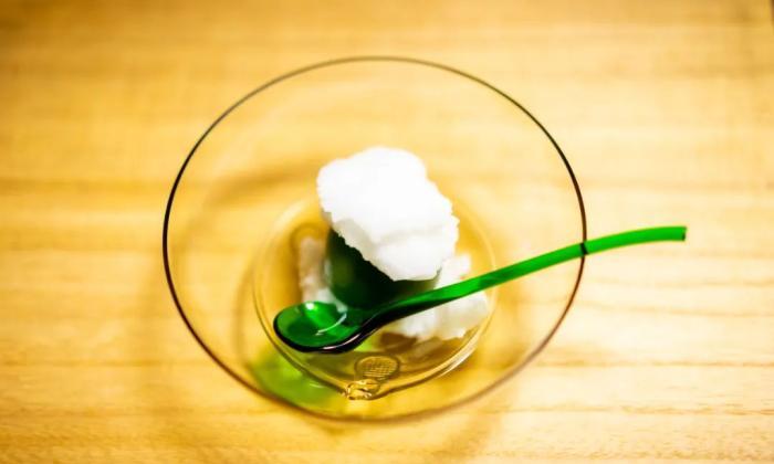 日本柚子做的雪芭,微酸,非常清爽,很好地平衡了味覺。