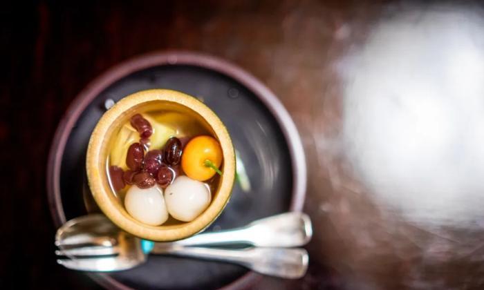 新砍的竹筒裝上蜜豆,芒果,甜瓜,白玉果凍等等,應季的水果,口感都非常棒。