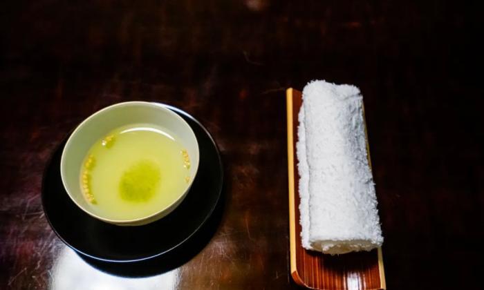 入座後呈上了熱茶和毛巾。茶是玄米茶,品質上乘,又香又順口。