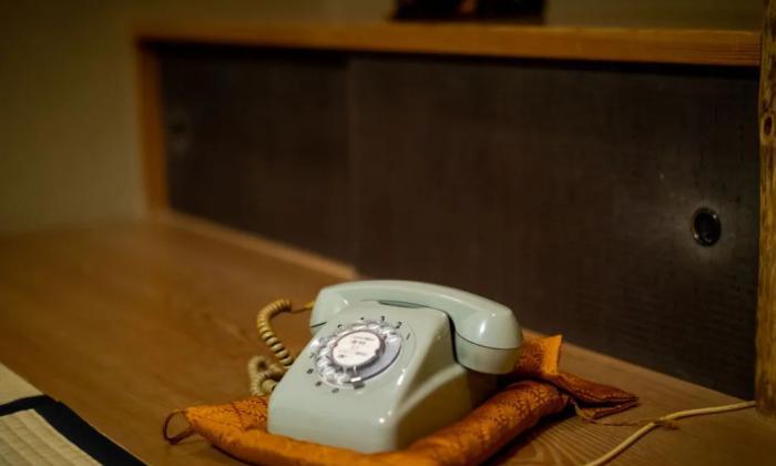 上完和果子後,仲居從旁邊的櫃子裡裡拿出一部老式電話,告訴我們吃完聊完後可以用這個電話打給他們,進行結賬買單。