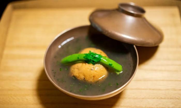 口感細緻綿密穴子飛龍頭吸收了高湯的鮮美味道,湯汁裡又加了山椒芽以後再進行勾芡,香味非常獨特,整道菜的味道也是非常別緻。