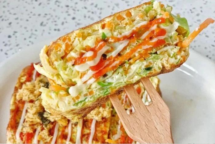 用捲心菜雞蛋液煎熟後夾上西紅柿片、火腿片、芝士片就是無麵包版的捲心菜三明治,將捲心菜和雞蛋液當做餅皮,撒上自己喜歡的配料還能變成捲心菜披薩和捲心菜熱狗卷。